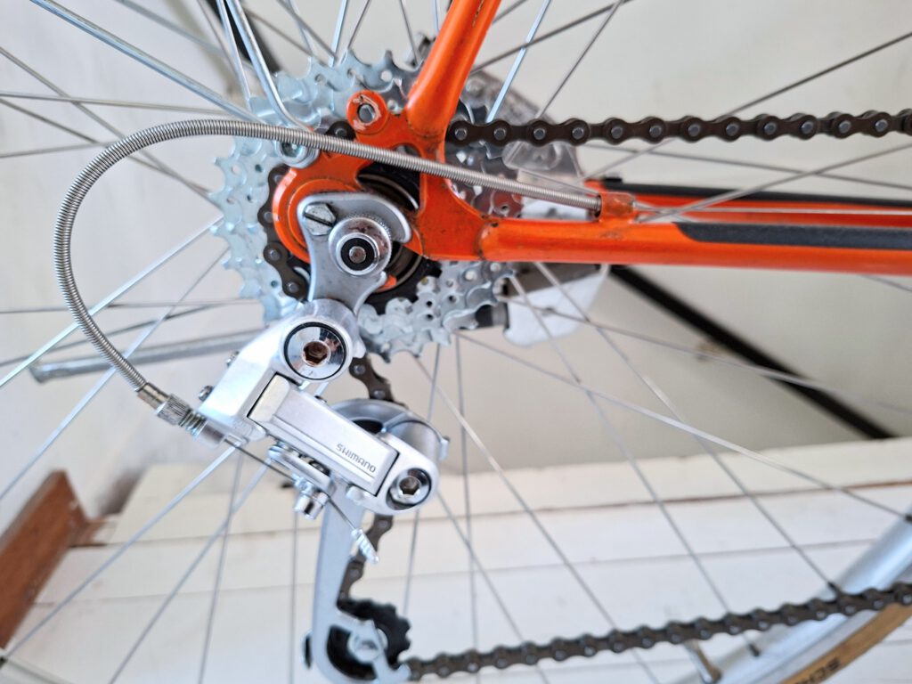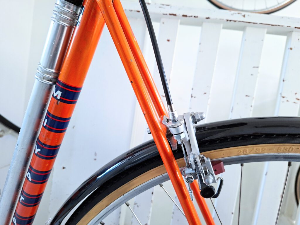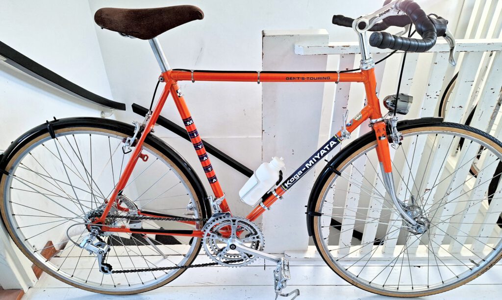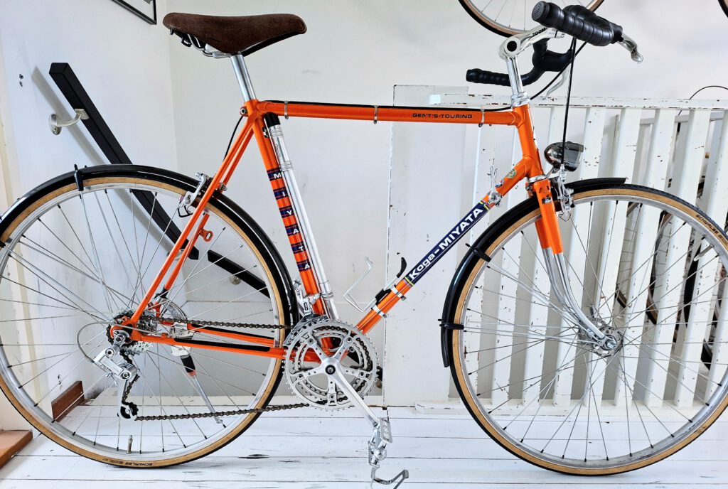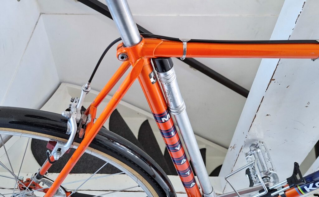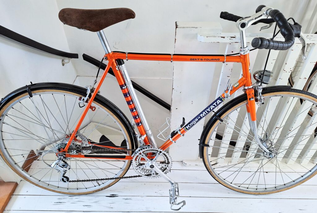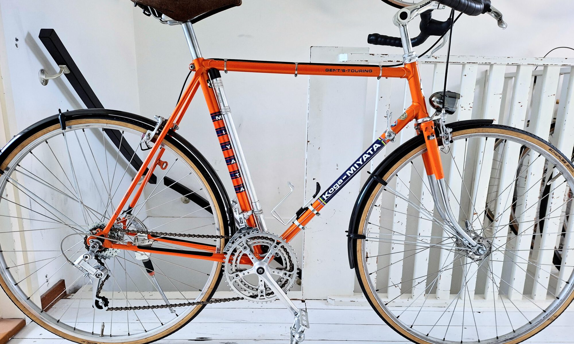 Staat: De fiets verkeert in prachtige staat. Het betreft een standaard Koga Miyata uit het eerste productiejaar. Uiteraard zijn er gebruikssporen aanwezig die passen bij de leeftijd (zie foto’s) tegenwoordig noemen we dat ‘patina’. Desondanks is de fiets volledig gerestaureerd, met oog voor zowel modern comfort als het behoud van zijn klassieke uitstraling. De fiets is voorzien van hoogwaardige Shimano Dura-Ace remhoeven, evenals stijlvolle, vintage spatborden en batterijverlichting — ideaal voor ontspannen citytochten. Daarnaast beschikt hij over een nieuwe trapas met een triple crankset van Ofmega en Deore DX derailleurs, waardoor ook steilere wegen moeiteloos te beklimmen zijn. Alle slijtageonderdelen zijn vakkundig en zorgvuldig vervangen. Zo zijn onder andere de Schwalbe buitenbanden, binnenbanden, rem- en schakelkabels, cassette, tandwielen, stuurlint, ketting en remblokken vernieuwd. De fiets is uitgerust met een zogenoemd city racer-stuur, dat zorgt voor extra controle en comfort op de weg. Desgewenst kan dit uiteraard worden vervangen door een klassiek racestuur.