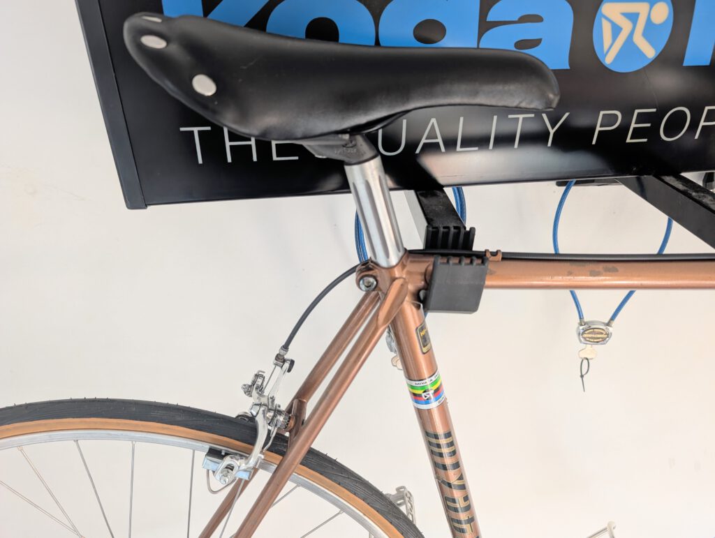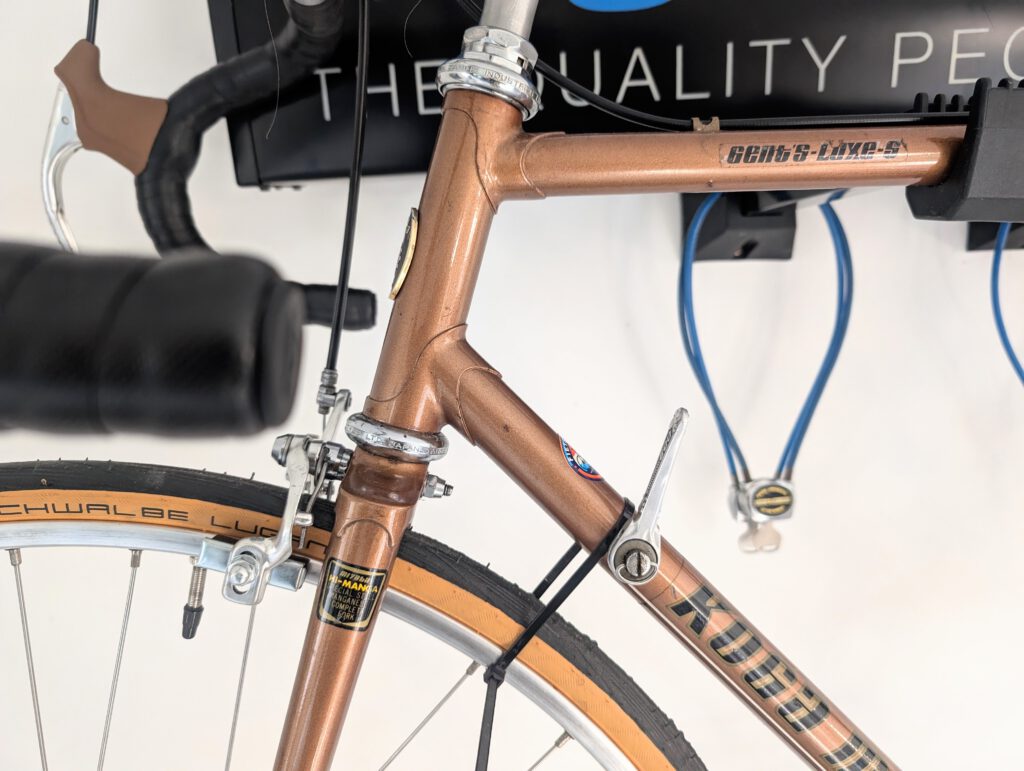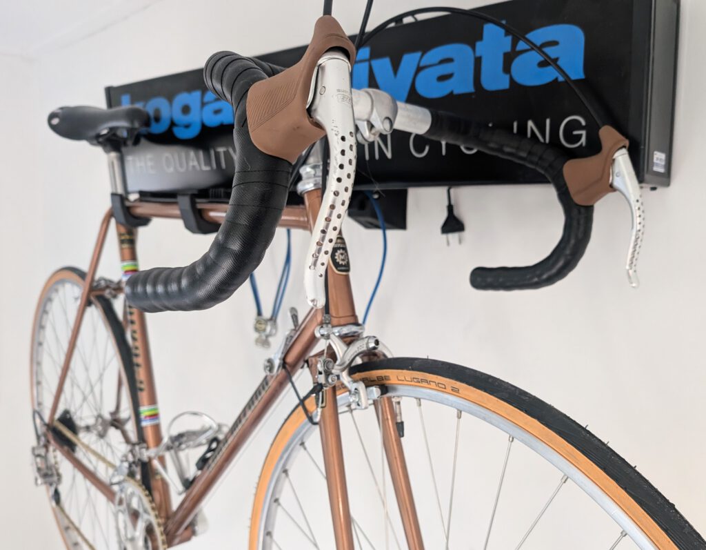 Condition: The bike is in beautiful, almost original condition. It shows signs of wear commensurate with its age (see pictures). Nevertheless, it’s a rare collector’s item! All wear parts have been professionally and carefully replaced with new parts. For example, tires, inner tubes, brake and shift cables, handlebar tape, chain, and brake pads have been replaced with new parts.