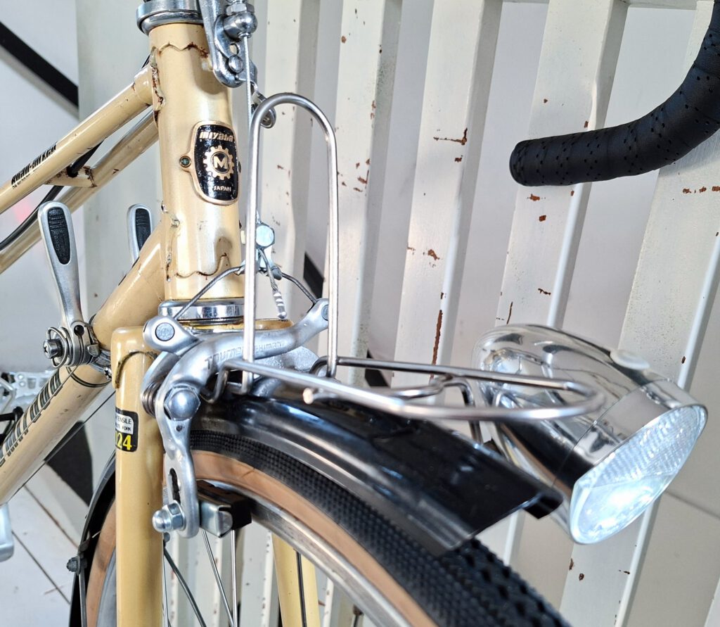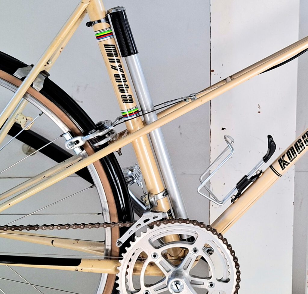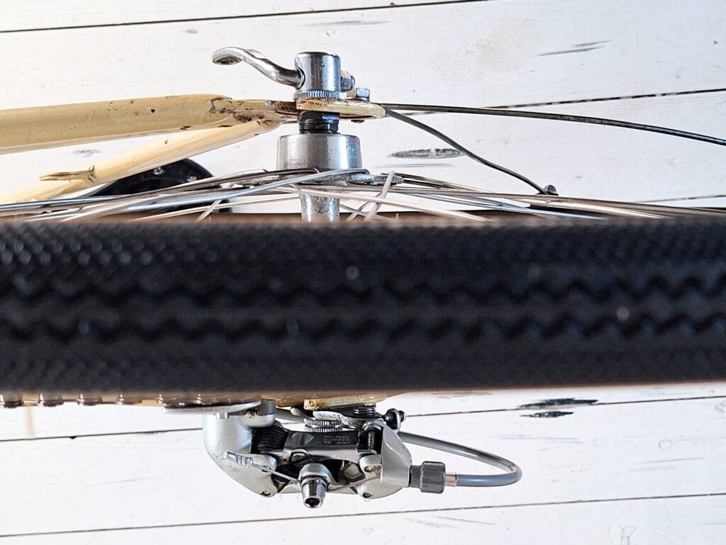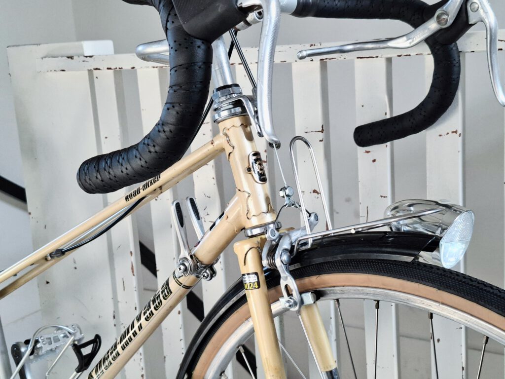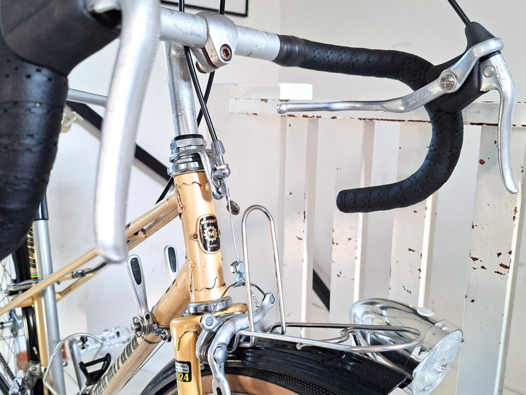 Conditie: De fiets verkeert technisch in perfecte staat, aangezien bijna alle onderdelen zijn vervangen door new old stock (NOS) of nieuwe onderdelen. De fiets heeft zeker patina, wat hem karakter geeft en er prachtig uit laat zien. In werkelijkheid ziet hij er zelfs beter uit dan op de foto’s. Alle slijtageonderdelen zoals rem- en versnellingskabels, remblokken, binnenbanden, banden, zadel, stuurlint en ketting zijn vervangen door nieuwe onderdelen.