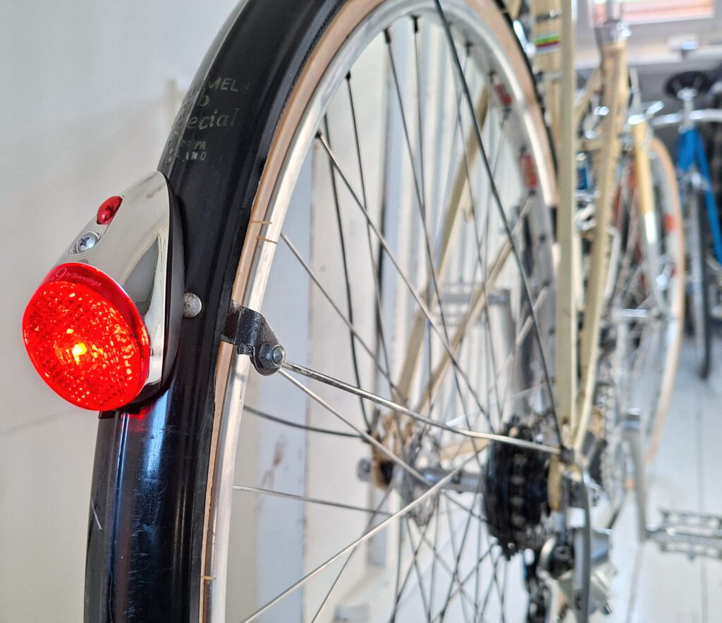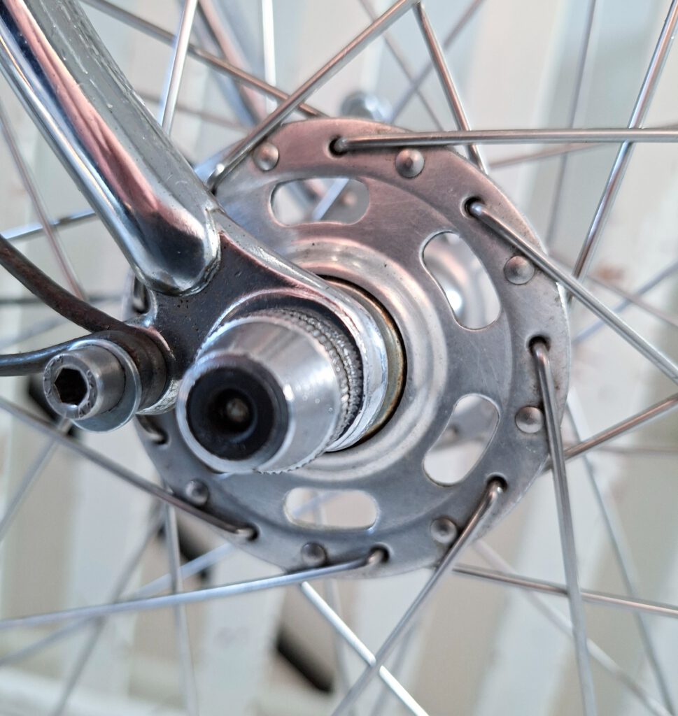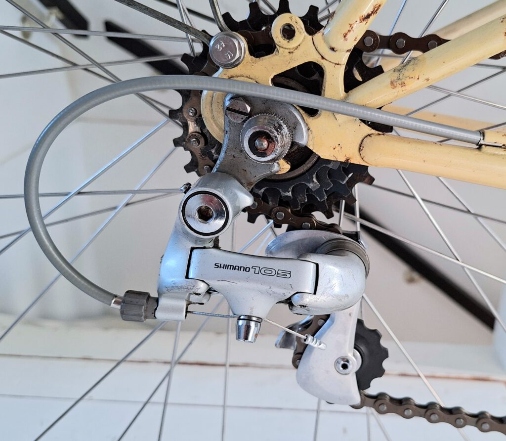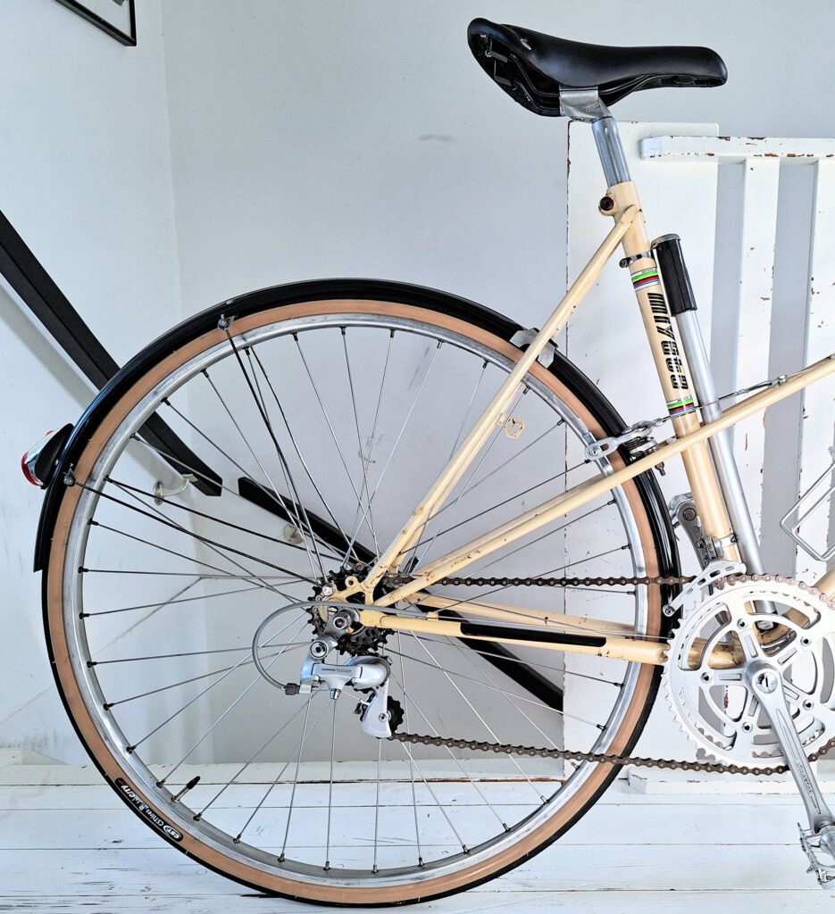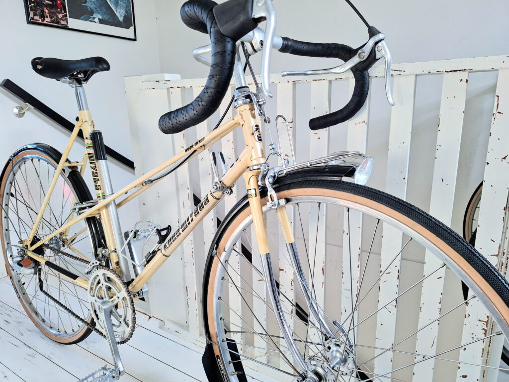 Conditie: De fiets verkeert technisch in perfecte staat, aangezien bijna alle onderdelen zijn vervangen door new old stock (NOS) of nieuwe onderdelen. De fiets heeft zeker patina, wat hem karakter geeft en er prachtig uit laat zien. In werkelijkheid ziet hij er zelfs beter uit dan op de foto’s. Alle slijtageonderdelen zoals rem- en versnellingskabels, remblokken, binnenbanden, banden, zadel, stuurlint en ketting zijn vervangen door nieuwe onderdelen.