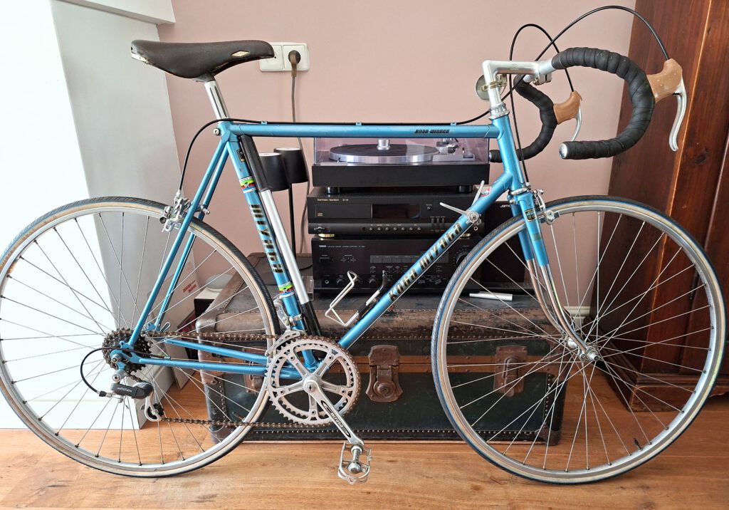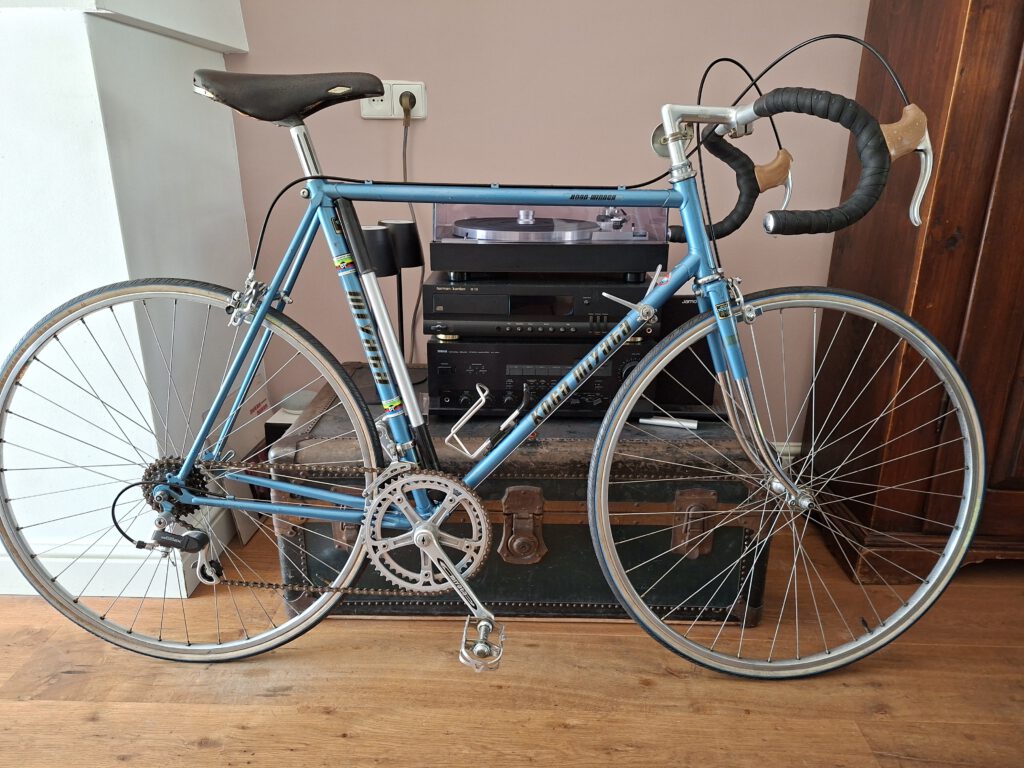 Condition: This beautiful Koga Miyata Roadwinner 1979 is in exceptionally well-preserved and largely original condition. The bike shows light signs of use consistent with its age — what we nowadays rightly call “patina” — which add to its character and authenticity. It is a rare collector’s item for enthusiasts of classic road bikes. Technically, the bike has been fully inspected and is ready to ride. Nearly all essential wear parts have been professionally replaced with high-quality new components. These include the brake and gear cables, handlebar tape, chain, and brake pads. The tires are still in good condition but can be replaced upon request for an additional €50.